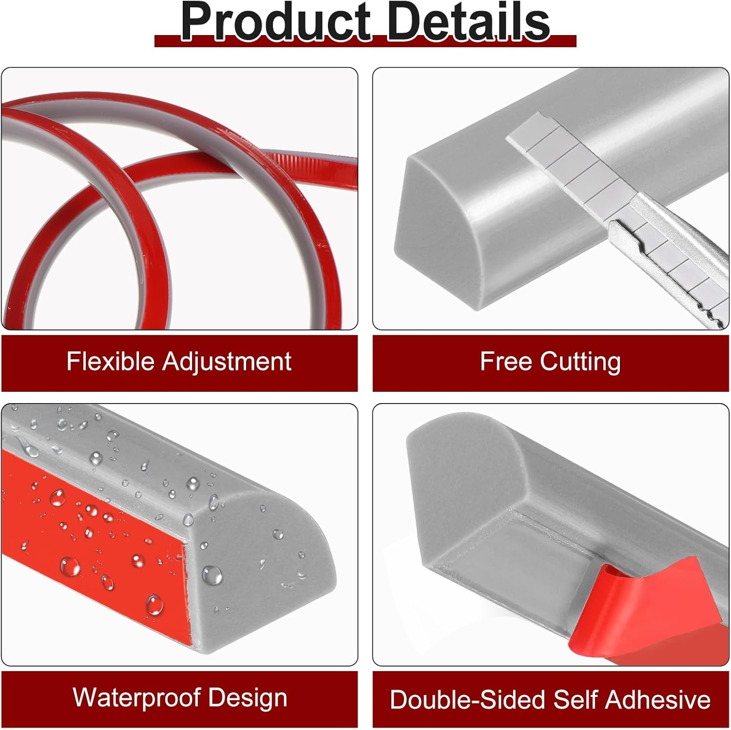 - [Practical Design] - Our shower water barrier is a fan-shaped design with soft material that can easily create various curved shapes and cut to the length you need. Moreover, it comes with a self-adhesive backing that helps ensure the barrier stays securely on the surface, creating a waterproof seal that separates wet and dry, preventing water from leaking outside of the shower area.