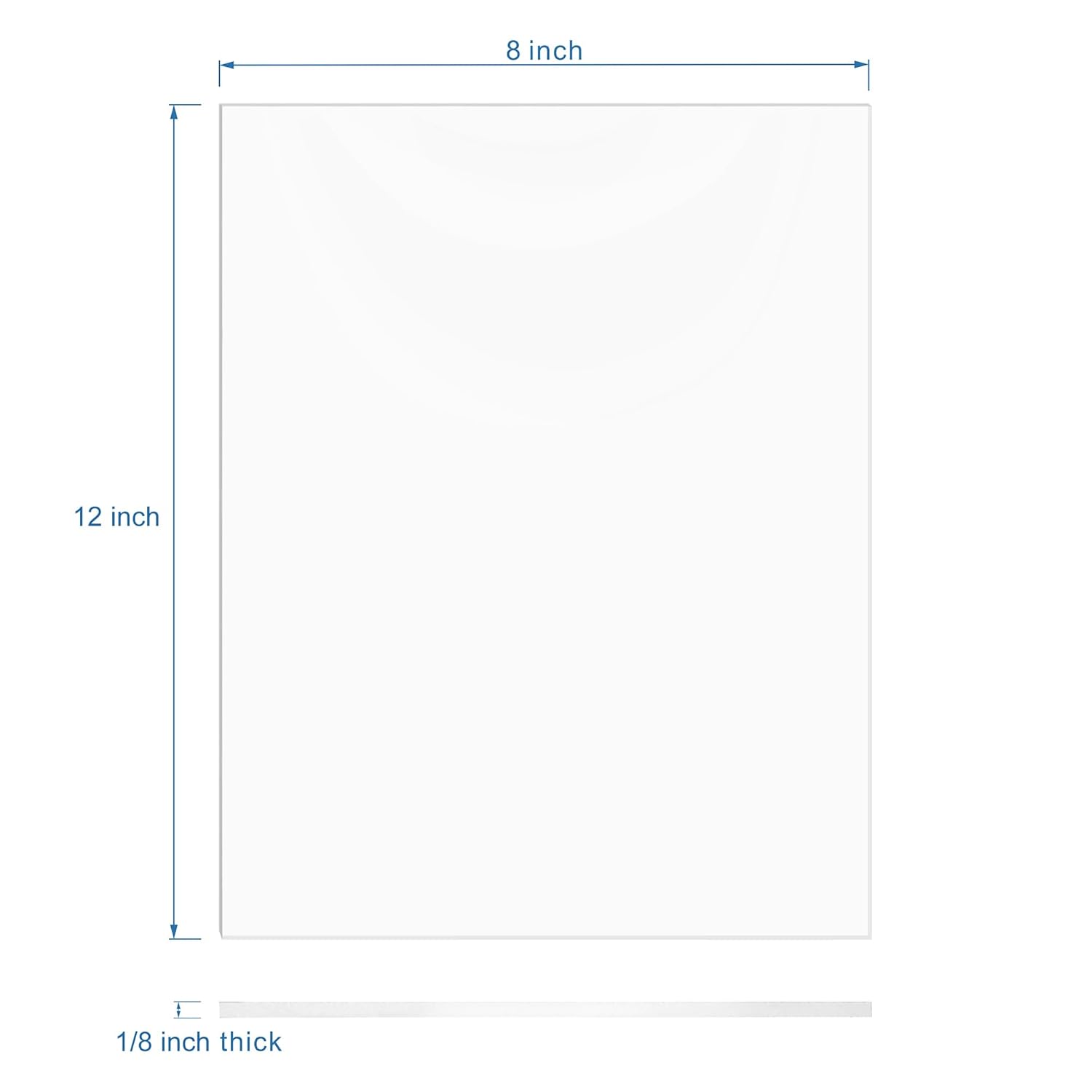 - It measures 8 x 12 inches with 1/8 inch thick (0.118" / 3mm nominal). Please remove the protective paper on both sides of the acrylic piece before use.