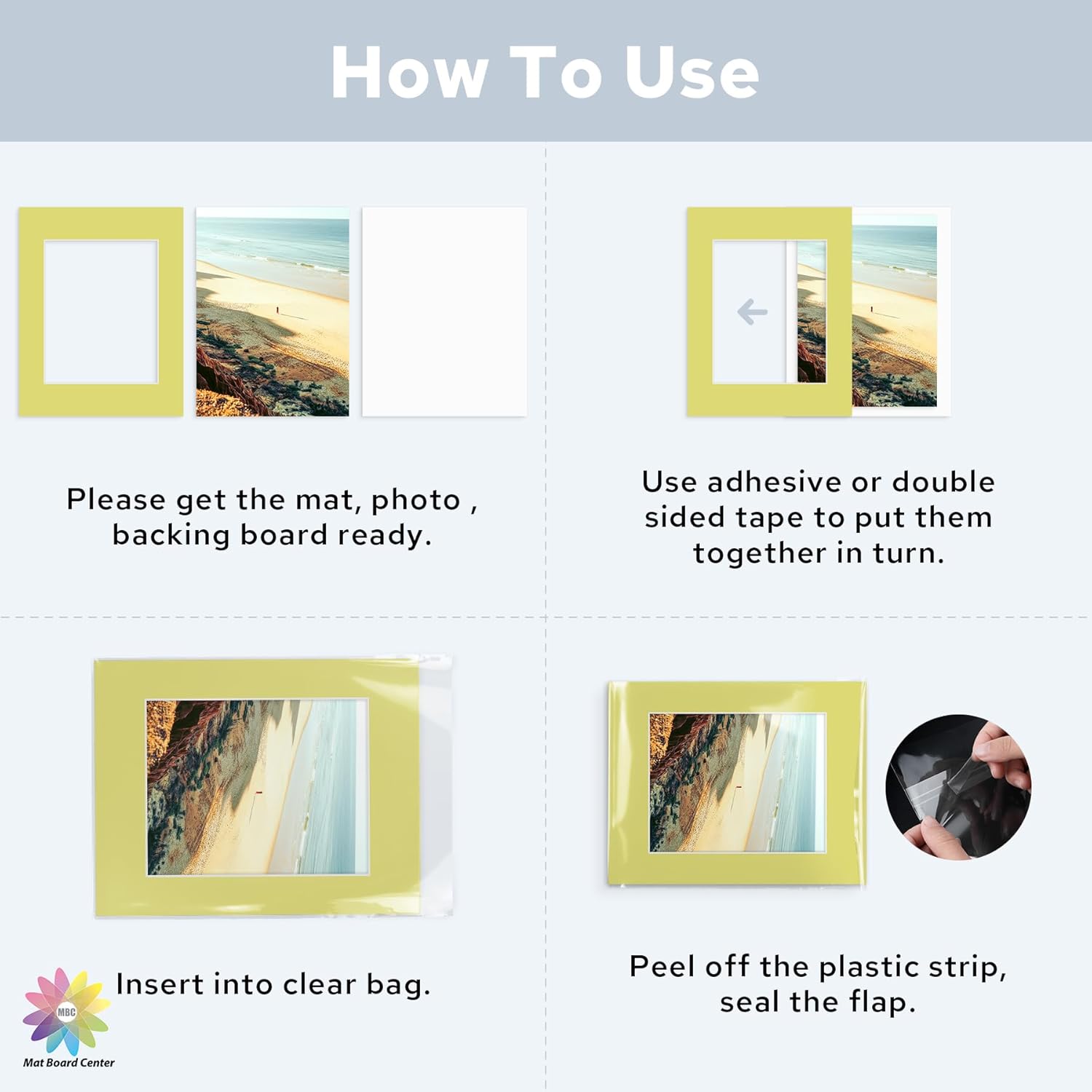 - This item comes with 10pcs acid free mats, 10 pcs clear bags, 10pcs backing boards. The re-sealable adhesive strip of the clear bag is below the opening of the bag instead of on the flap.