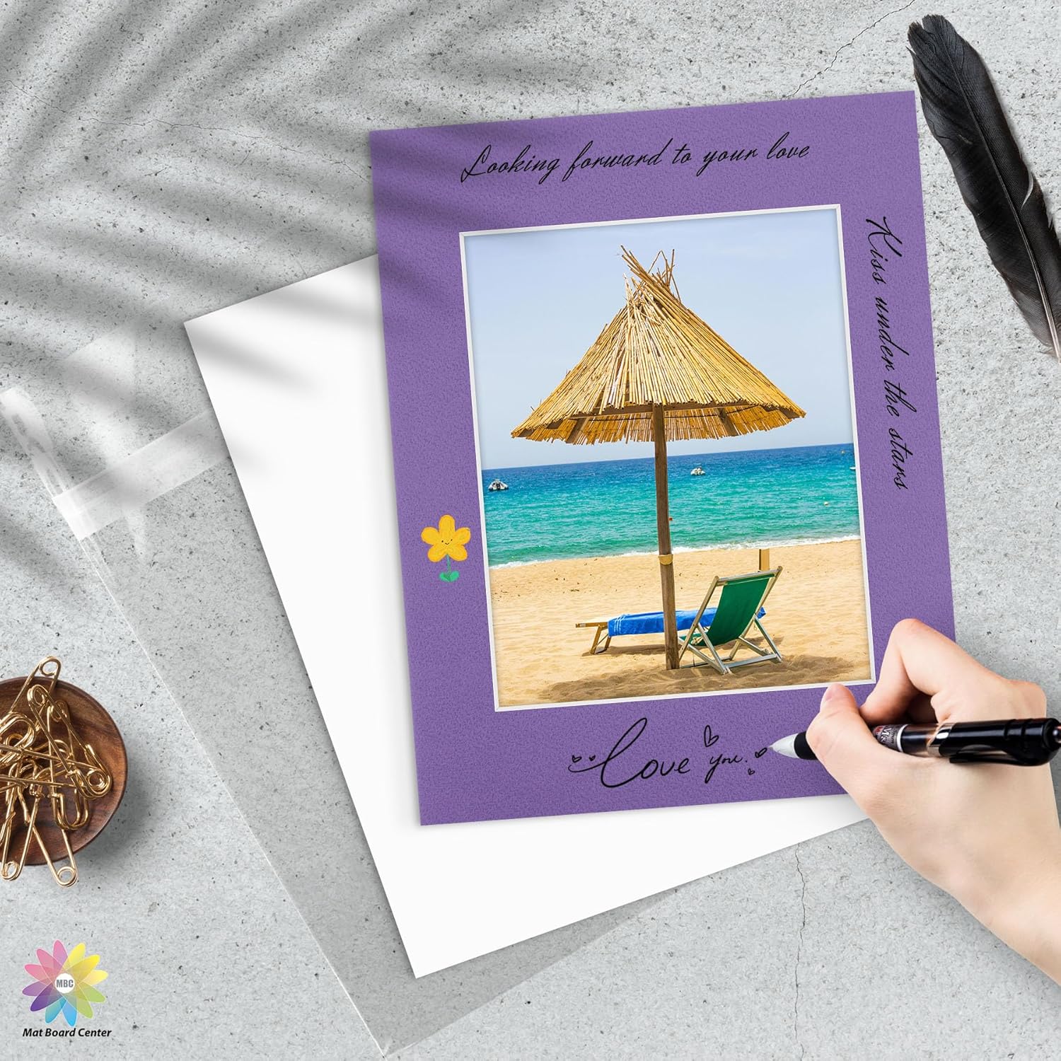 - Photo Mat Opening Size: 7.5" x 9.5" with 45° white core bevel cut.