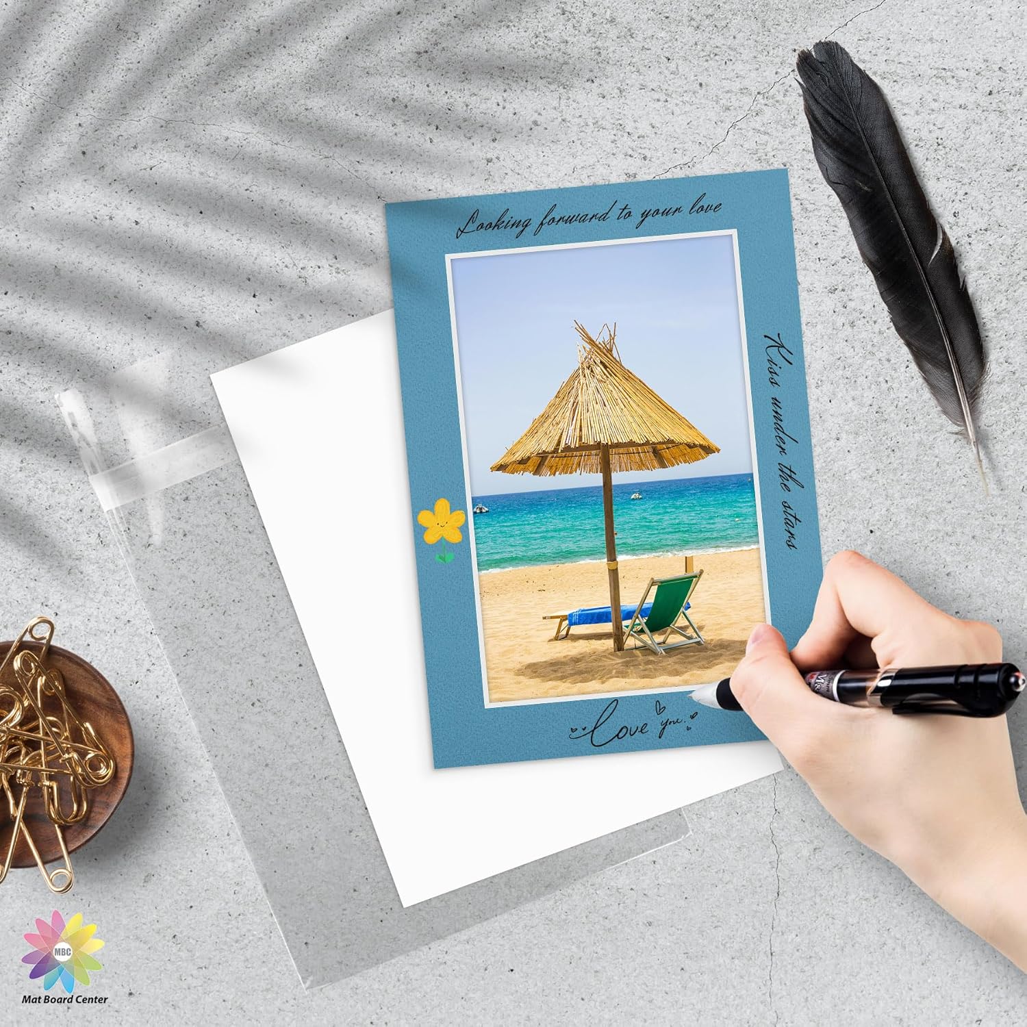 - Pack of 50 pre-cut mixed color 5x7 photo mats matte with white core, 4-ply thick (1/16in - 1.4mm). The backing is white on both side.