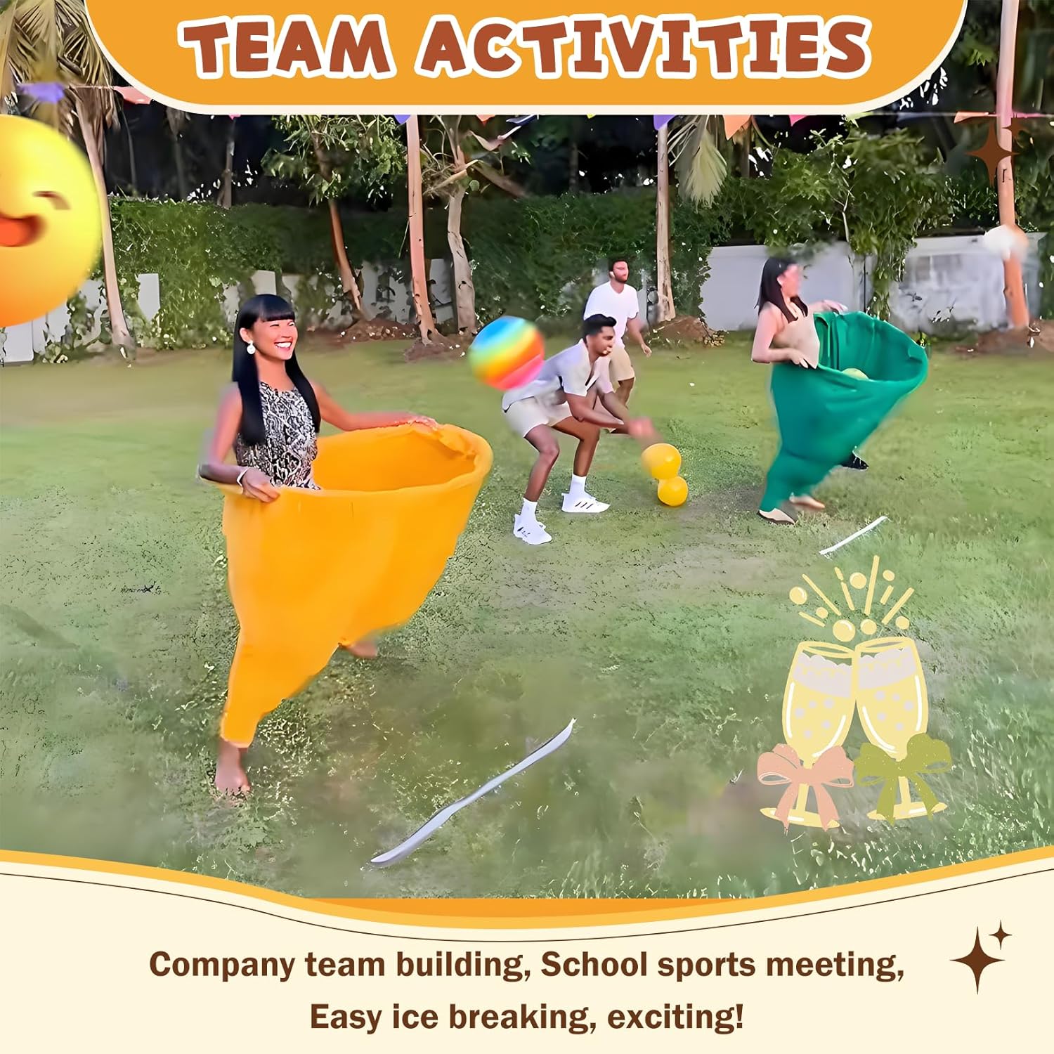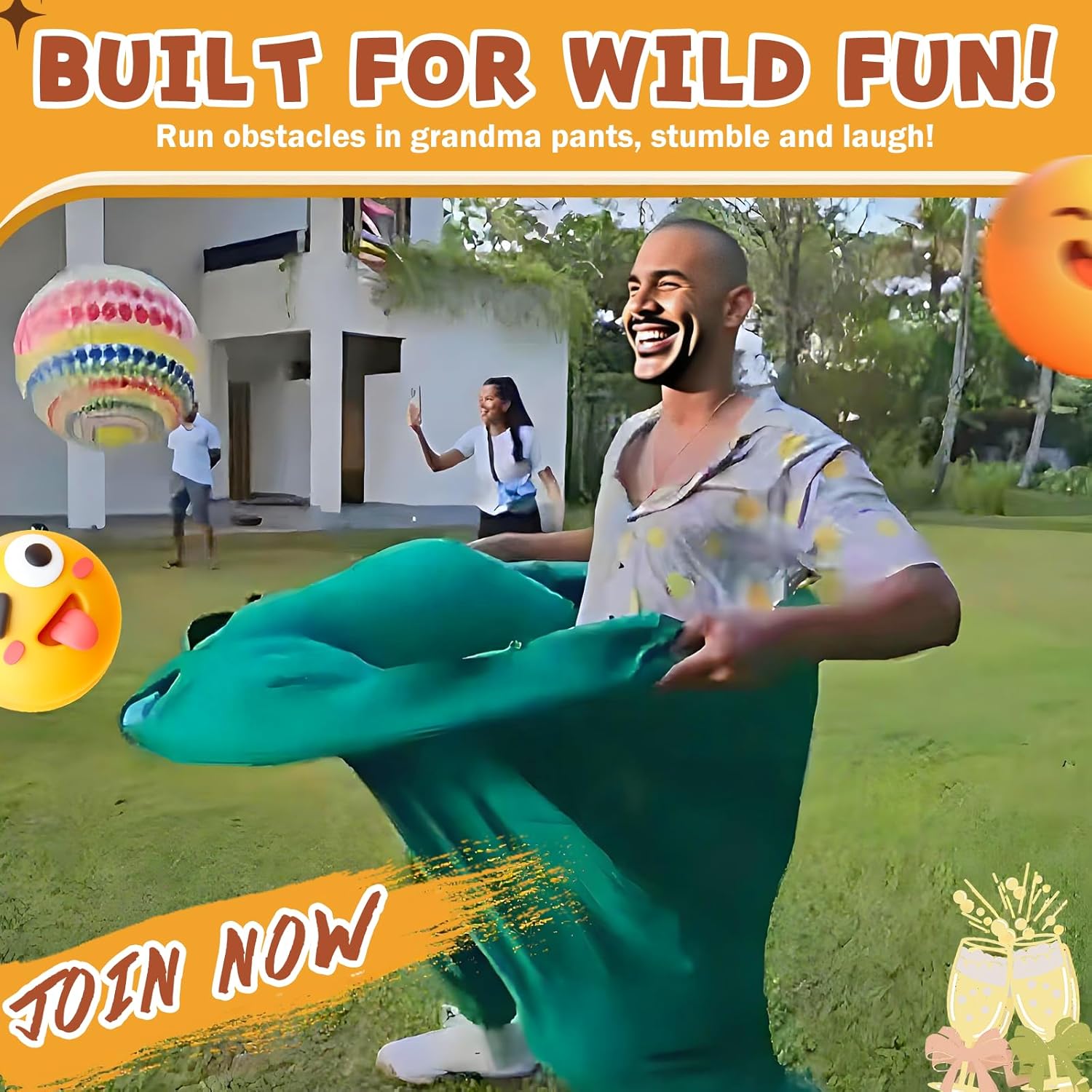 - Unleash non-stop laughter! Our Granny Pants Yard Game features giant stretchy pants and five inflatable balls for epic relay races or toss games. Perfect for adults, families, and parties – transform your backyard, park, or beach bash instantly! Durable stretchy pants handle jumps and tumbles. Includes ball, pump & drawstring backpack. Get ready for unforgettable fun!