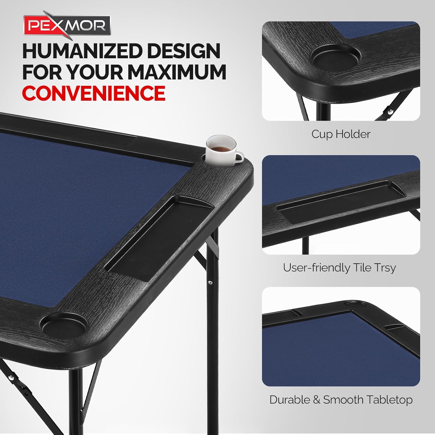 - 【Professional Wear-resistant Tabletop】The tabletop is made of skin-friendly felt, which provides a soft and comfortable touch.It has excellent wear resistance and easy to maintain. Besides, 35" x 35" (L x W) table top provides you with ample space for mahjong tiles, playing cards and other items.It allows 4 players to play comfortably.