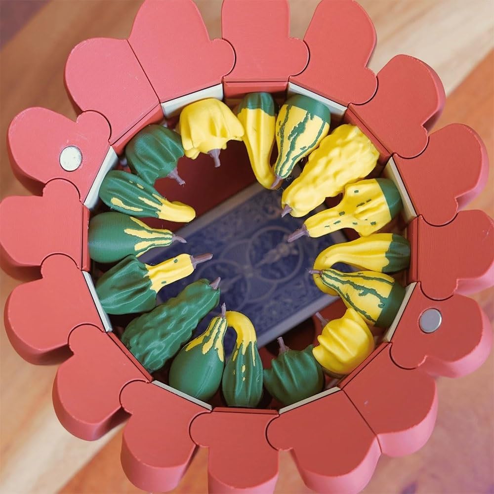- Multifunctional All-in-One Design: The Pumpkin Board Game is part of the "Gourd Games" modular series. The pumpkin-shaped game hub transforms into a chessboard, dice tower, and card storage box, combining classic board games like chess, checkers, and Cribbage. Its compact design balances practicality and decorative appeal